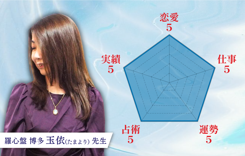 占い激戦区である福岡において、圧倒的な支持を得て1位に輝いたのは「占いサロン羅心盤 博多店」の玉依(たまより)先生です。