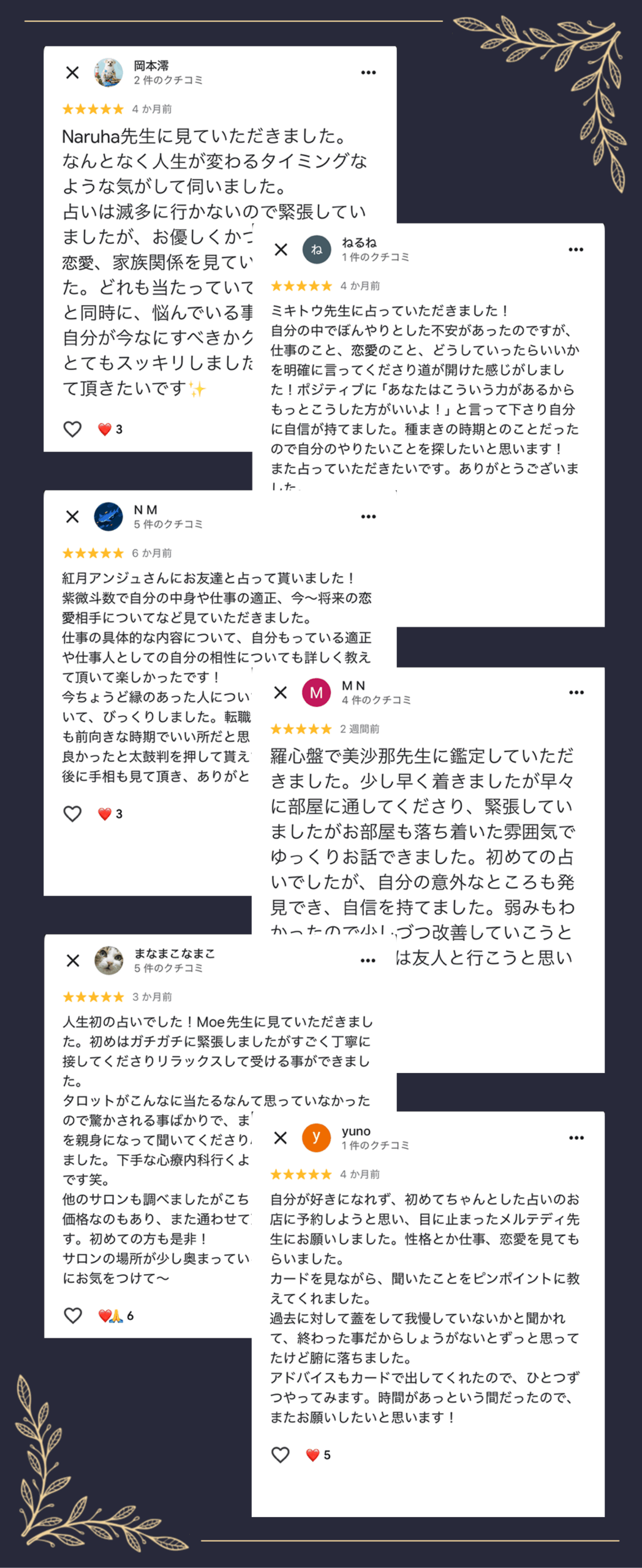 Googleでの口コミも他の占い館より遥かに高く平均星4.8の評価でした!