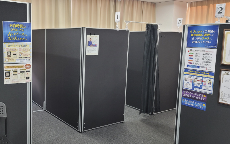 また、友達やカップル同士で一緒のブースでの鑑定も可能で占い館では珍しいです。